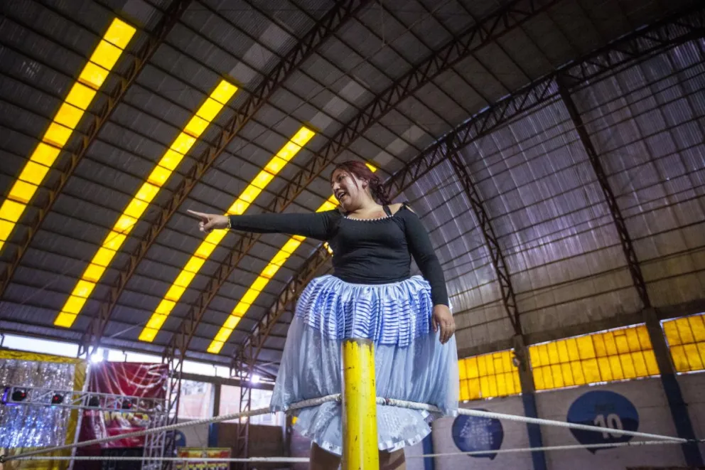También es educadora Kathy "la Hermosa", encarna el poder de la mujer aimara en los cuadriláteros de Bolivia
