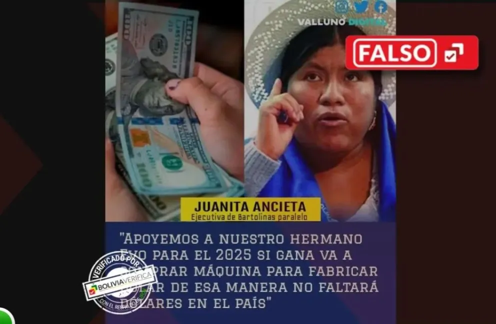 Bolivia Verifica Dirigente Juanita Ancieta no declaró que Evo propondrá una máquina para fabricar dólares