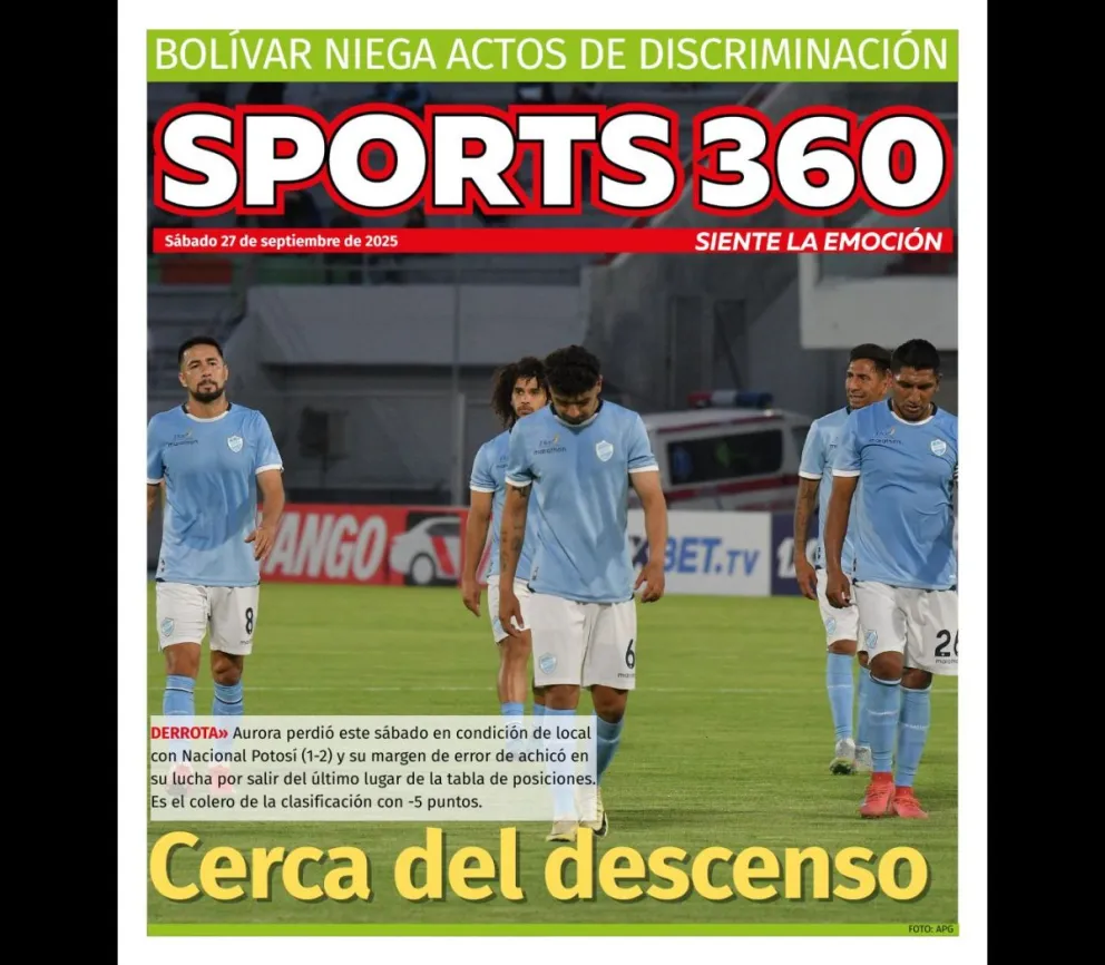 Archivo de noticias Noticias del 2025-09-27 Festejo Cine Center ofrece tres días de películas con entradas a 20 bolivianos Santa Cruz La rueda de negocios de Cainco cierra con 99,4 millones de dólares en intenciones de negocio División Profesional Nacional Potosí vence a Aurora y le acorta el margen de error en su lucha por salir del fondo Promoción Bolivia "se proyecta como un importante destino turístico", según Arce Justicia Juez revoca domiciliaria a principal acusado del caso “Joker”, permanecerá en San Pedro Postura Bolívar asegura que no hubo discriminación hacia la periodista Gisel Aguilar por parte de Robatto Reservas YPFB asegura que descubrió hidrocarburos a través de ocho pozos en Santa Cruz Acreditación Con 24 atractivos en lista, El Alto ya es un “destino regional turístico” y recibe un galardón Golf Boliviana Onishi vuelve a brillar y está a un paso del título en el Sudamericano Prejuvenil Reacciones Llueven las críticas a Lara por sus dichos, el candidato se disculpa y dice que “no hay maldad en su corazón” División Profesional Independiente remonta a Real Tomayapo en tres minutos y se mete en zona copera Feminicidio La Policía en estado de alerta por la posible presencia de otro prófugo del triple asesinato en Argentina en el país Reacción "Ya no tengo visa para viajar a EEUU, no me importa", responde Petro Desencuentros Cancelación de la visa a Petro ahonda crisis de nueve meses en relación de Colombia y EEUU Reporte 22 incendios mantienen en vilo a Santa Cruz, la lucha contra el fuego depende de bomberos y voluntarios ¿Ajuste de cuentas? Investigan la muerte de un reo brasileño en el penal de El Abra, recibió 25 puñaladas de otro interno Pederastia Fiscalía boliviana confirma la detención en Uruguay de exsacerdote que abusó a niños en Cochabamba Italia Juventus salva el empate con el Atalanta gracias al tanto del colombiano Cabal Control La ANH minimiza denuncias sobre la calidad de la gasolina y transportistas envían muestras a Perú para su análisis Programas Marinkovic intenta romper el bastión rural del MAS: “Me han pedido que vaya a Achacachi" Narcotráfico Brasil intercepta aeronave procedente de Bolivia con una tonelada de cocaína Santa Cruz La explosión de una garrafa ocasionó el incendio en la feria de Ascensión de Guarayos España Atlético se impone en el derbi al pasar por encima de Real Madrid con una contundente victoria Misiones El TSE confirma presencia de la OEA y la UE como observadores en el balotaje Inglaterra Liverpool pierde su invicto en la Premier al caer en los minutos finales con el Crystal Palace Polémica Lara compara la corrupción del país con enfermos de cáncer, pacientes repudian y exigen disculpas Voto 2025 Balotaje: TSE alista las maletas electorales para el voto en el exterior Fauna La cruzada para cuidar al gato andino, el mensajero de los espíritus guardianes en Bolivia Crimen Interpol aclara que sospechoso del triple feminicidio en Argentina, que fue detenido en Bolivia, es peruano Tenis Bolivia conquista dos títulos de dobles en el Lima Open con Antelo y Bustillos Represalia EEUU revoca la visa a Petro por llamar a soldados estadounidenses a desobedecer a Trump Transporte El ferrocarril, que inició una revolución y puso al mundo en marcha, cumple 200 años Suceso Un automóvil en llamas estalla frente a cárcel de Ecuador, sin reportes aún de daños Voleibol Santa Cruz recibirá la Liga Superior Masculina con la participación de seis clubes Medida El PDC aparta a Andrés Torres y dice que ya no es parte de la campaña Relaciones Tuto dice que si gana segunda vuelta, invitará a investidura a González y no a Maduro Corrupción Botrading: Diputado halla documento en el que la representante legal se contrató a sí misma Suspensiones La Corte Constitucional de Ecuador deja a Noboa sin dos leyes emblema de su nuevo mandato Fecha 23 Con la obligación de ganar, Aurora recibe en el Félix Capriles a Nacional Potosí Mirada pública El ocaso de los Jacobinos corporativos Lo que pienso Lecciones para octubre 1: Encuesta y… violencias El satélite de la Luna Lourdes Contra viento y marea Cuidado con la exégesis de la normativa electoral Ir al Día anterior Seleccionar fecha: Ir