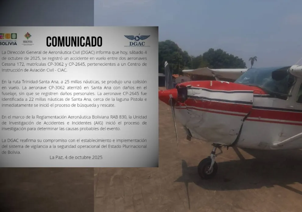Trinidad-Santa Ana Reportan un accidente aéreo en Beni: dos avionetas colisionaron en pleno vuelo, una de ellas está desaparecida