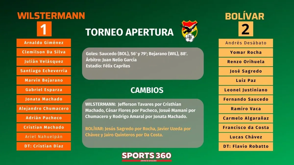 Con un doblete de Fernando Saucedo, Bolívar venció a Wilstermann (1-2) y se mantiene firme en la punta del Grupo D, este sábado en el estadio Félix Capriles de Cochabamba por la cuarta jornada del torneo Apertura.