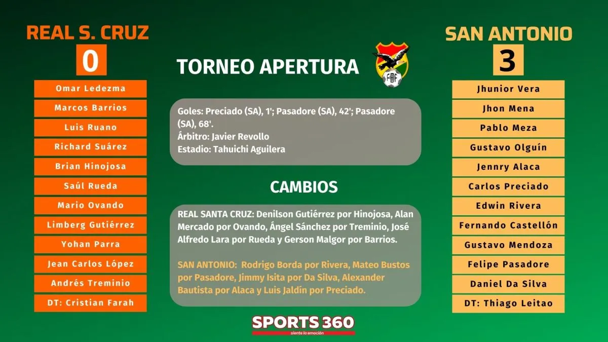 San Antonio Bulo Bulo volvió a golear, la semana pasada le hizo cinco a The Strongest, este lunes supero a Real Santa Cruz por 0-3, en partido que se jugó en el estadio Tahuichi Aguilera de la capital oriental, y recuperó la punta del grupo A.