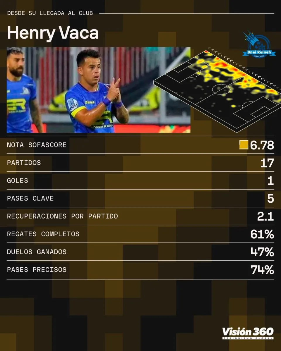 Los números de Vaca con el Club Maccabi Bnei. Crédito: Sofascore.