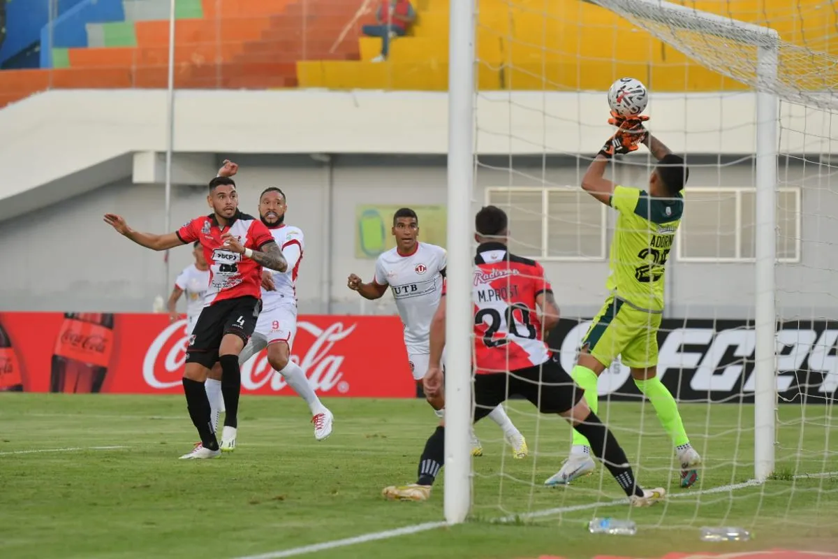 Tobar ya cabeceó y el golero Adorno, de Nacional, salva a su arco. Foto: APG