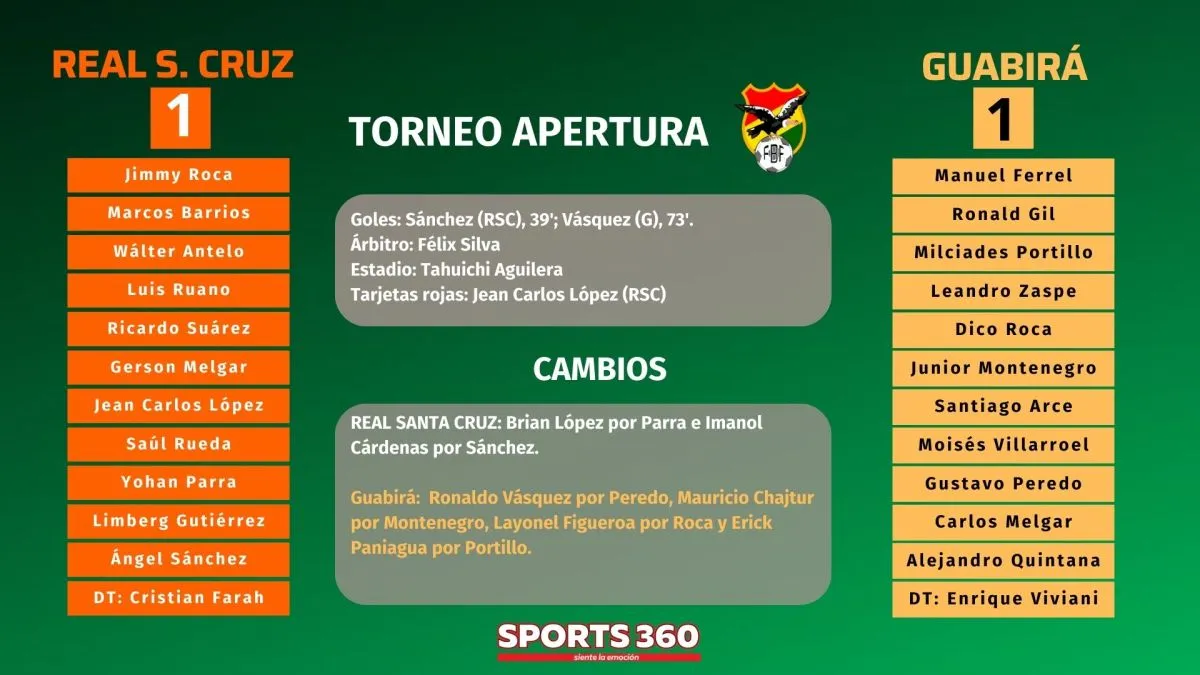 Real Santa Cruz no hace pie en el torneo Apertura 2024, este viernes, como ya pasó a principios de semana cuando fue goleado por San Antonio (0-3), volvió a decepcionar a sus hinchas pues solo pudo empatar (1-1) ante Guabirá, en el arranque de la quinta fecha (clásicos interseries).