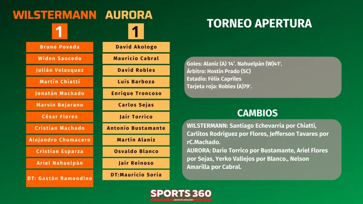 Wilstermann y Aurora no pudieron sumar de a tres, en el clásico cochabambino que terminó igualado 1-1, lance disputado en el estadio Félix Capriles.