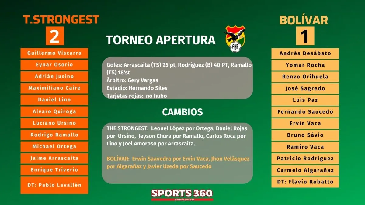 The Strongest se quedó con el Superclásico 297 al vencer a Bolívar por 2-1 y le quitó el invicto que tenían los celestes con una lección de practicidad y contundencia.  Las cuarenta mil personas que llegaron al estadio Hernando Siles disfrutaron otra vez de un gran espectáculo.