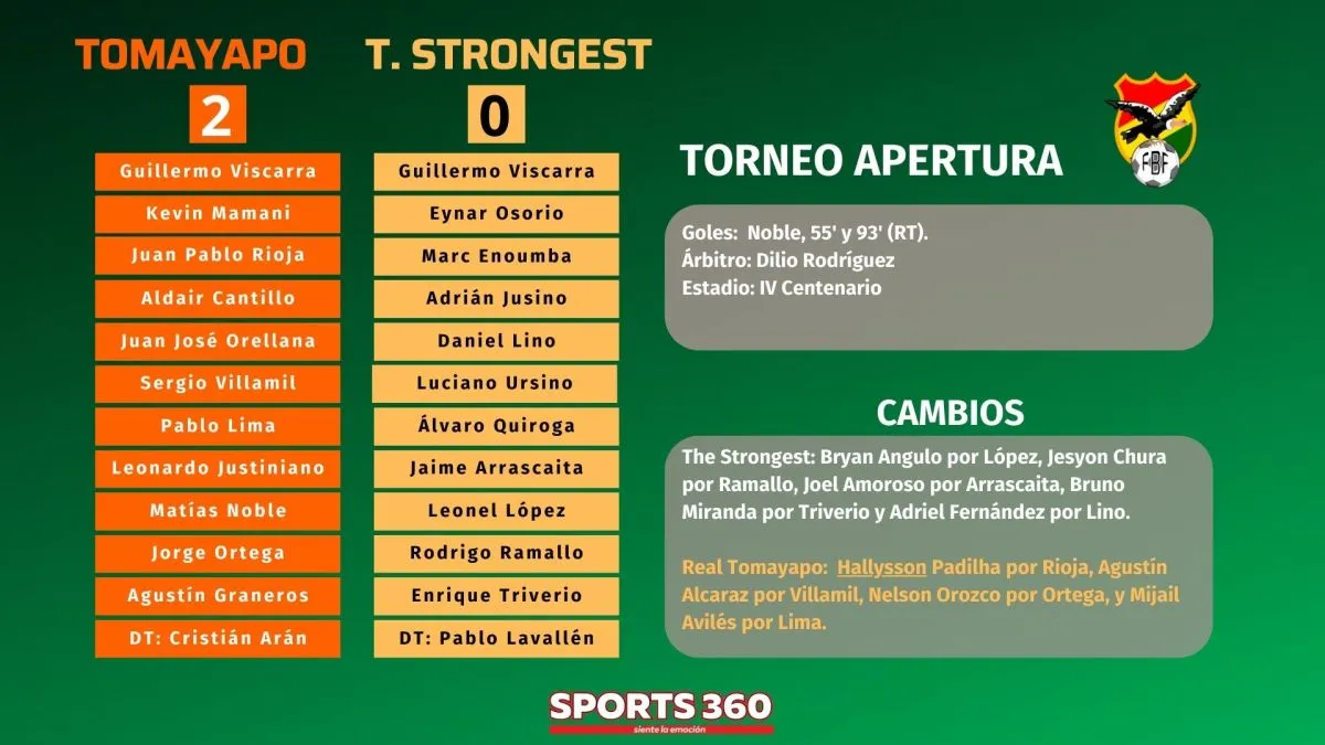 Real Tomayapo estaba obligado a ganar para seguir con chances de avanzar a cuartos de final y no falló, le ganó a The Strongest por 2 a 0, partido de la sexta fecha del grupo A, que se jugó en un abarrotado IV Centenario.