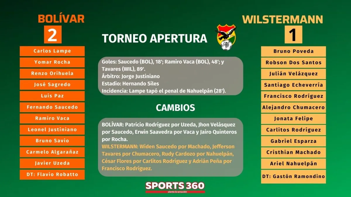 Pero a los 18 Bolívar abrió el marcador con un tremendo remate de Saucedo desde fuera del área grande.