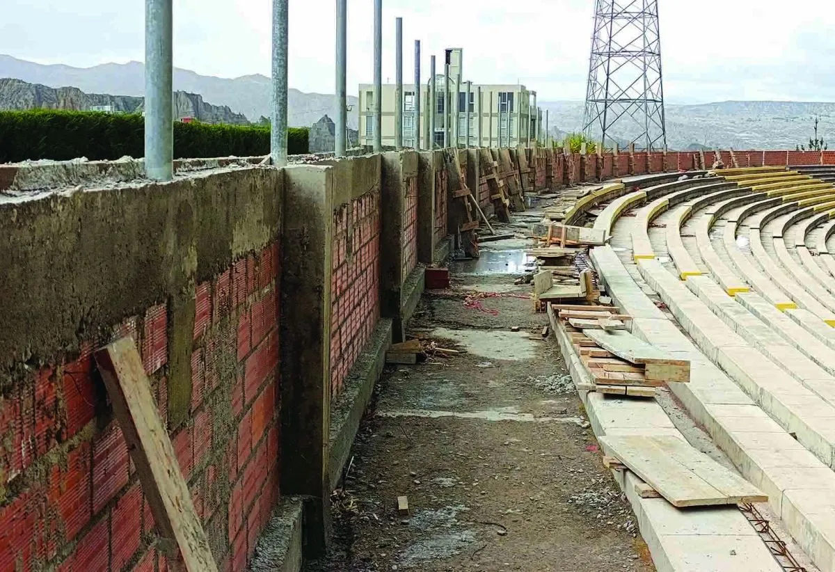 Así luce el nuevo muro perimetral del Rafael Mendoza. Al fonde se puede observar el Complejo de Achumani. Foto: Andrés Rojas