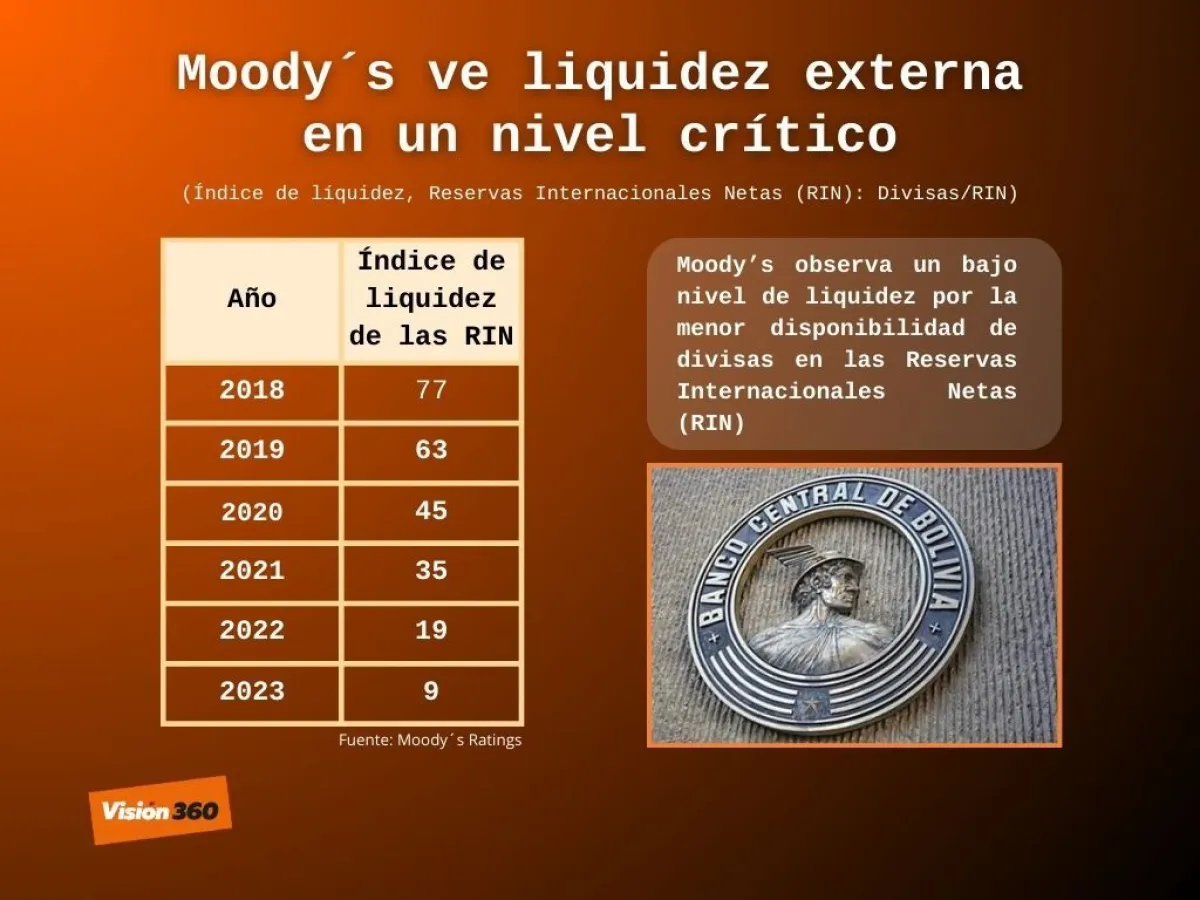 El presidente del Colegio de Economistas de Bolivia, Jorge Ahamine, sostuvo que Moody´s hace sus análisis con base a la información oficial y se necesitan ajustes. Por ejemplo, el problema de la escasez de dólares, sólo se frenará cuando se fortalezcan las Reservas Internacionales Netas (RIN).