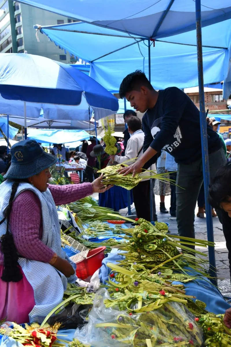 En La Paz, el templo de San Francisco fue uno de los más visitados. En el atrio, al igual que en todas las iglesias, se instaló una pequeña feria de ramos o palmas de todo tipo, tamaño y forma. Los asistentes no dudaron en comprarlas para que sean bendecidas en la misa.