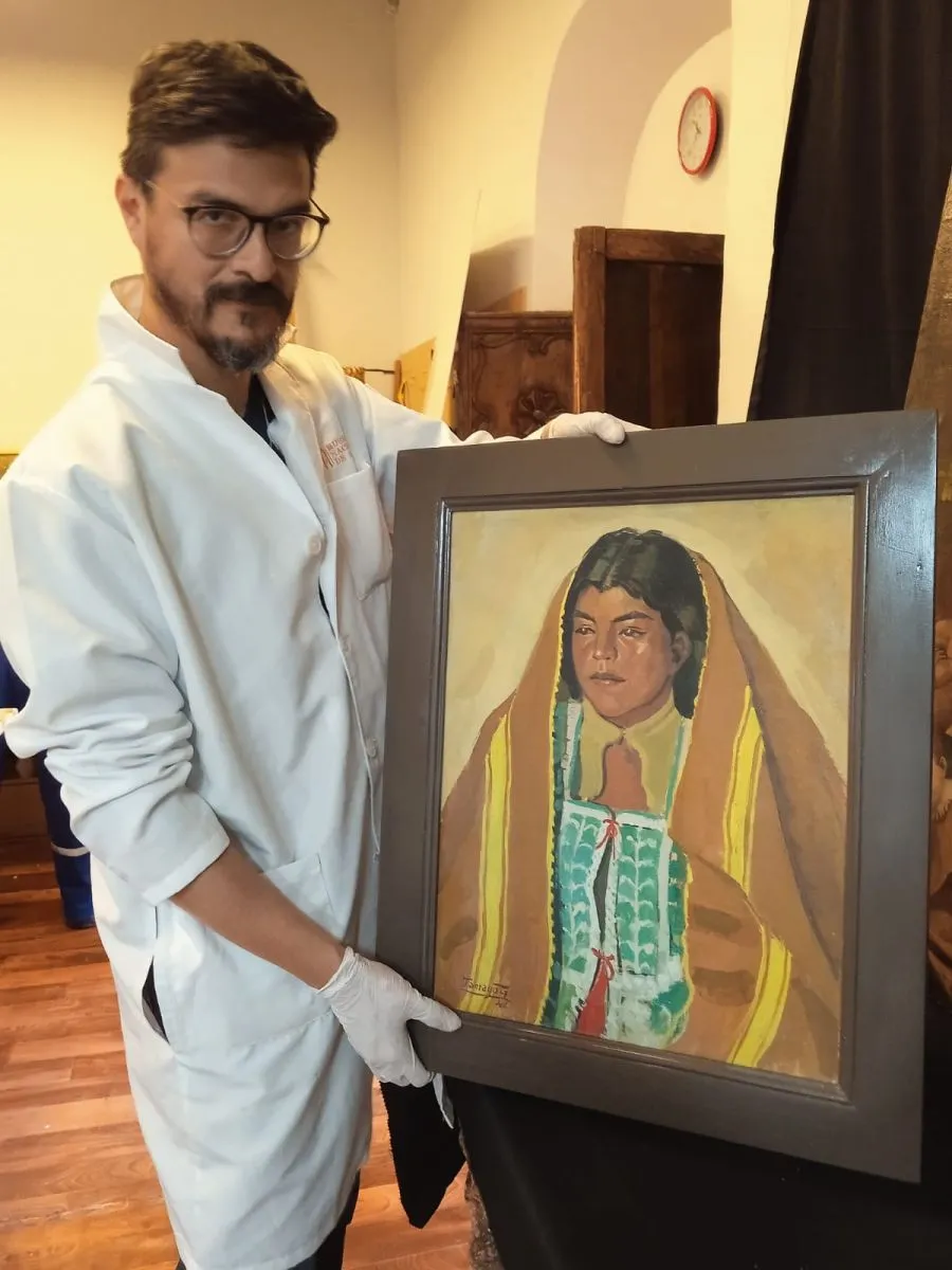 Los dos cuadros, ambos denominados "La imilla", fueron seleccionados el año pasado por el curador de la Bienal de Venecia 2024, el brasileño Adriano Pedrosa.