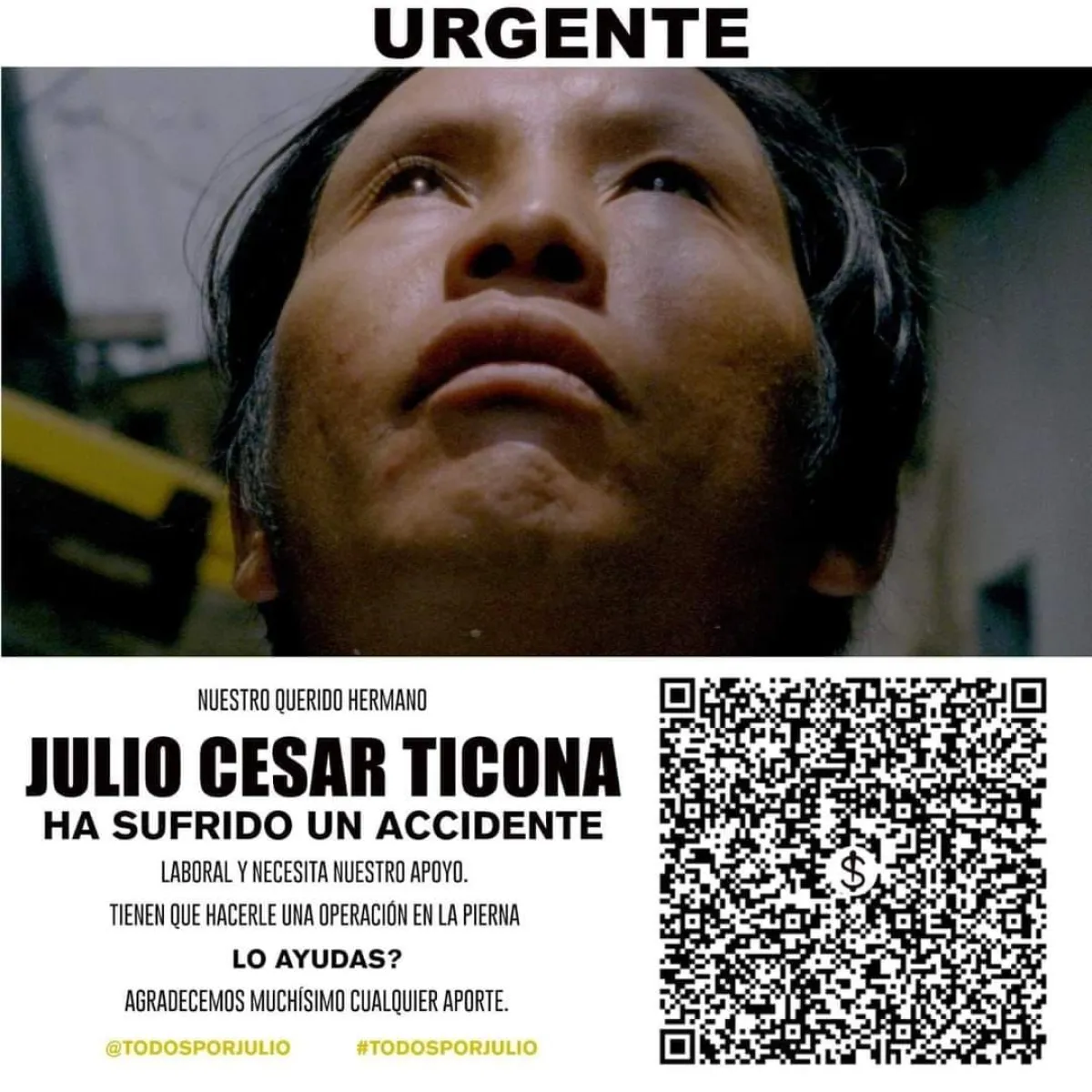 Julio César Ticona sufrió esta semana un accidente de trabajo. Cayó más de cuatro metros y necesita con urgencia una operación costosa en la cadera. Sus amigos iniciaron una campaña de apoyo.