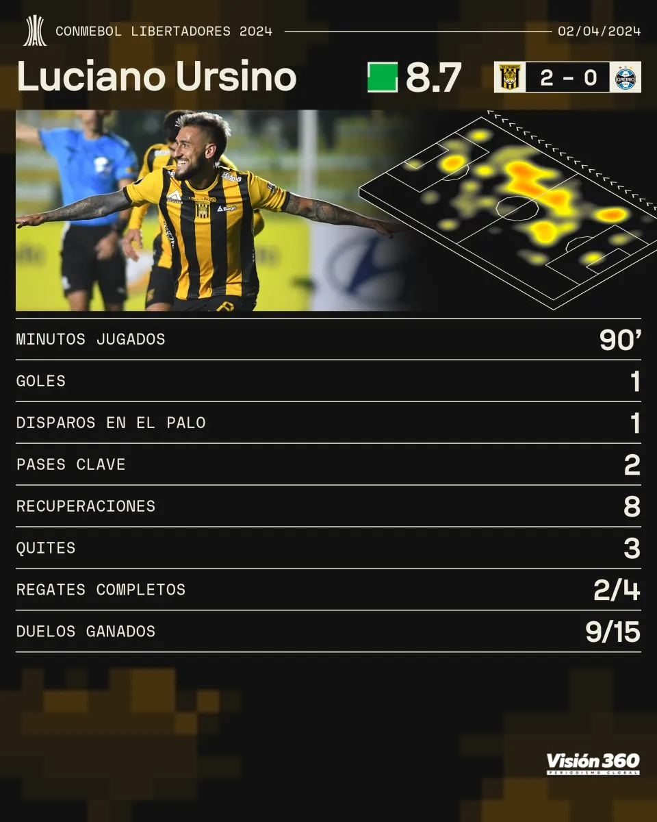 Después de casi dos años el centrocampista Luciano Ursino volvió a convertir un gol para The Strongest por la Copa Libertadores de América. El tanto que le hizo este martes por la noche en el primer tiempo al brasileño Gremio también significó su tercer festejo internacional con la casaca aurinegra.