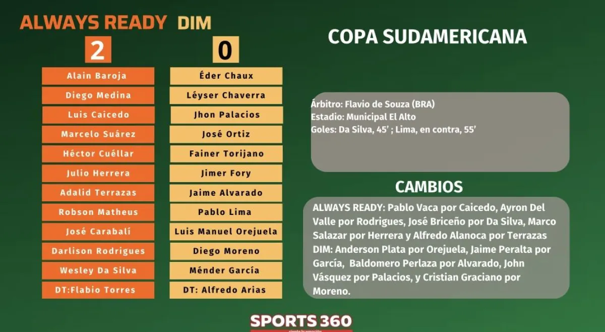 Always Ready comenzó con pie derecho su andadura en la Copa Sudamericana 2024 al derrotar 2-0 al Deportivo Independiente de Medellín de Colombia este jueves en el estadio Municipal de Villa Ingenio, en el cierre de la primera jornada del Grupo A.