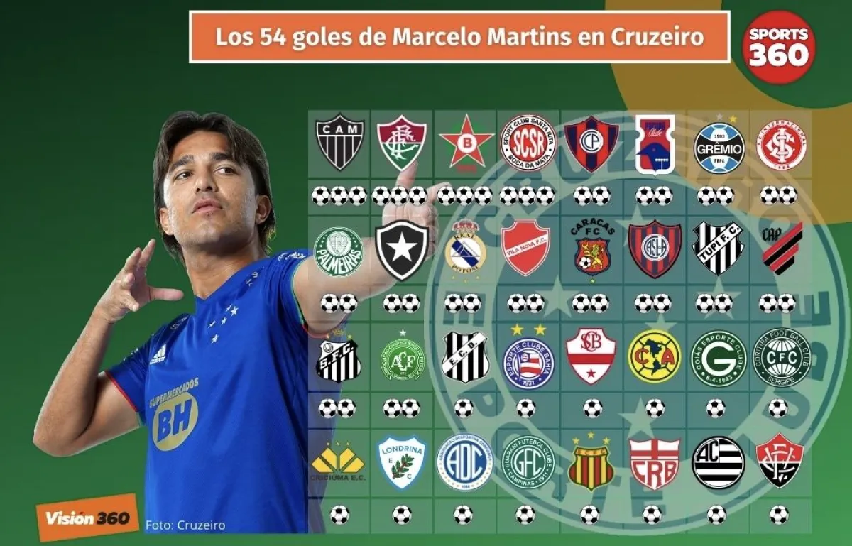 Los clubes a los que Martins hizo goles con la camiseta de Cruzeiro. Ilustración Diego Gonzales.