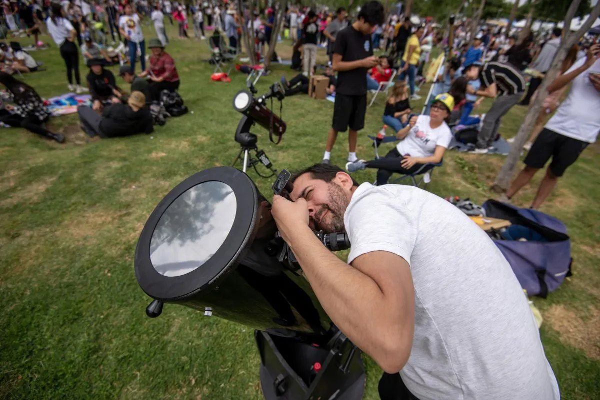 Aunque en la Ciudad de México solo se observó de forma parcial, donde el Sol se ocultó en un 79% durante casi cuatro minutos y medio, los capitalinos se reunieron en distintos puntos a apreciarlo.