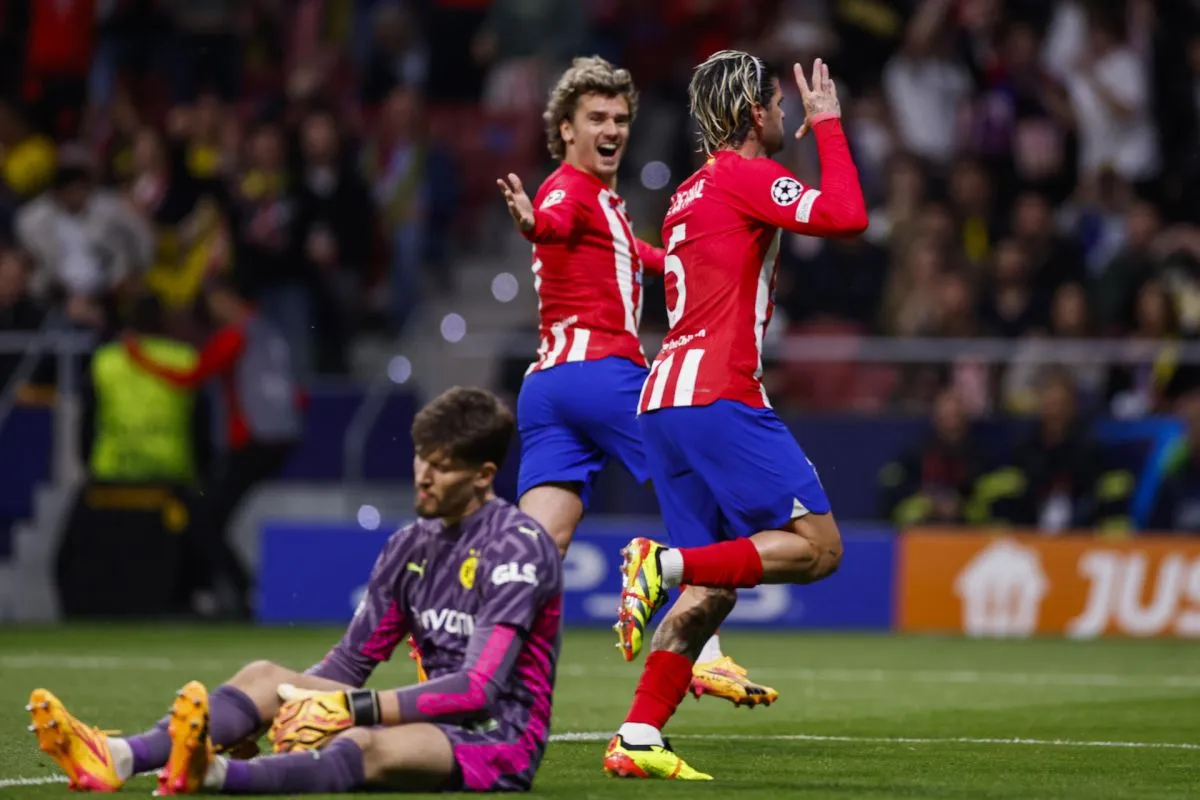 Desatado, con una tormenta perfecta en la primera media hora, el Atlético de Madrid desbordó inicialmente al Borussia Dortmund en la ida de los cuartos de final de la Liga de Campeones, en ventaja desde el Metropolitano para la vuelta dentro de una semana en el Signal Iduna Park, por los goles de Rodrigo de Paul y Samuel Lino en un comienzo formidable, al que se opuso el contratiempo final del 2-1 de Sebastian Haller.