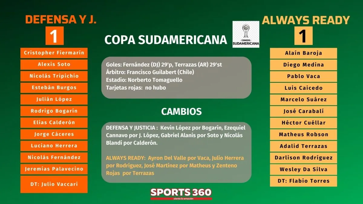 Always Ready sumó un punto de oro al igualar con Defensa y Justicia a un gol por lado, en partido que se jugó en Buenos Aires por la segunda fecha de la Copa Sudamericana.