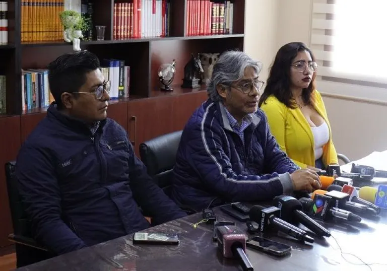 El exfiscal Edson Tola, en conferencia de prensa con Wilfredo Chávez. Foto: APG