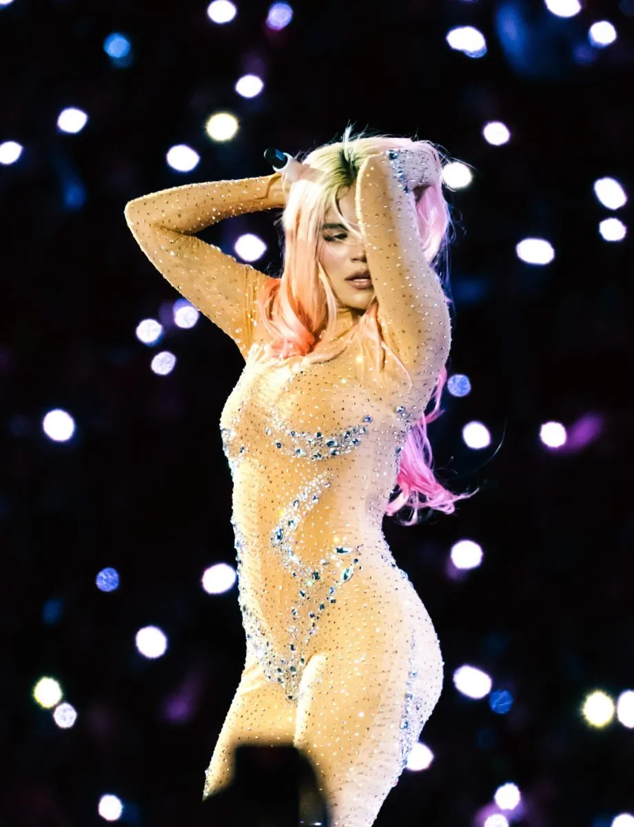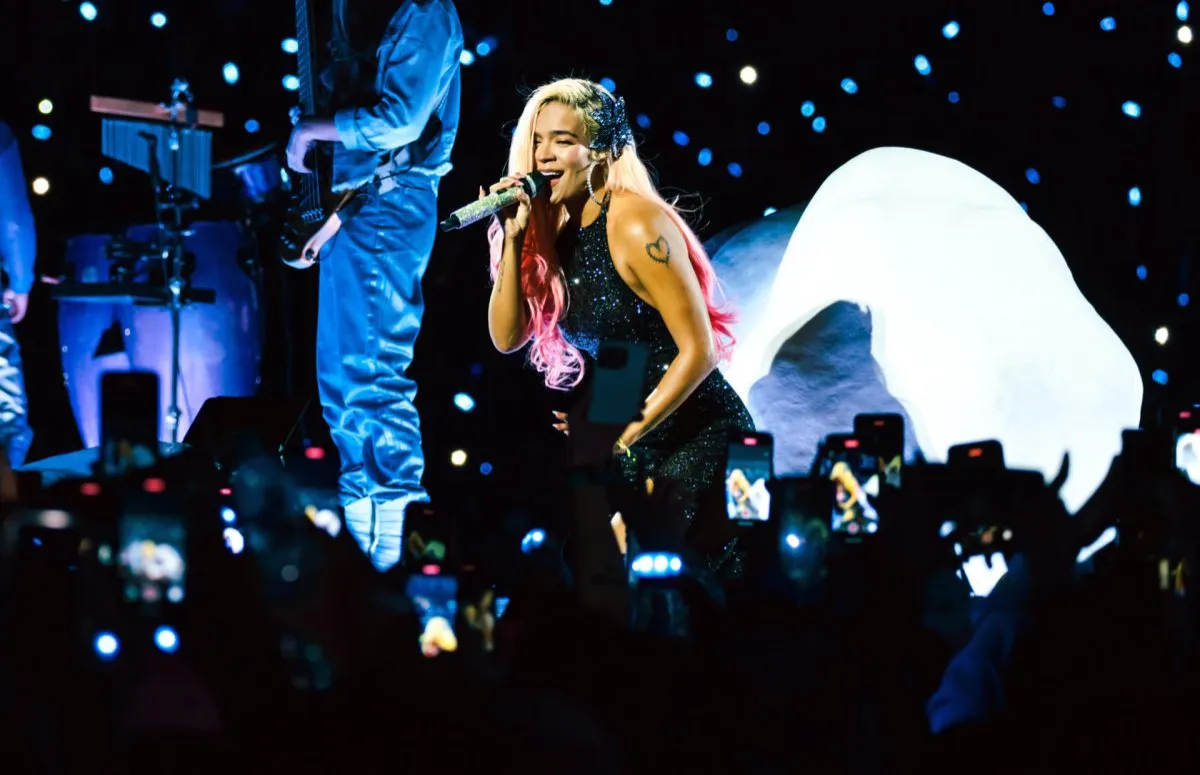 La cantante Karol G durante un concierto el 5 de abril en Bogotá. Foto: EFE