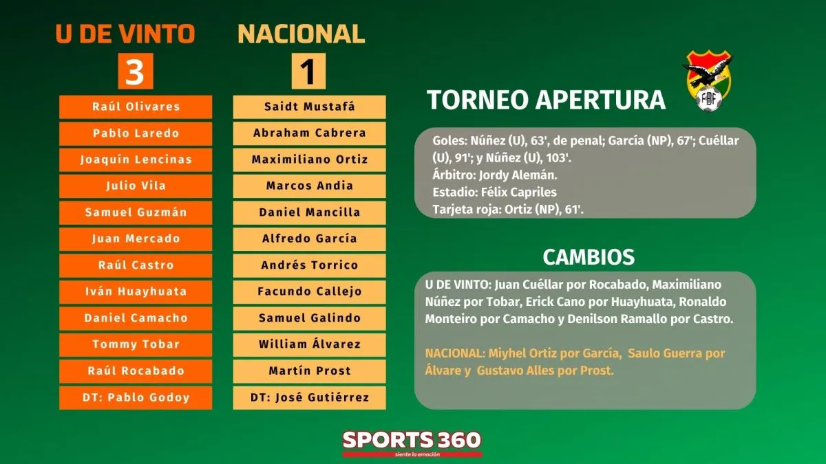Universitario de Vinto elimina a Nacional y se convierte en el primer semifinalista