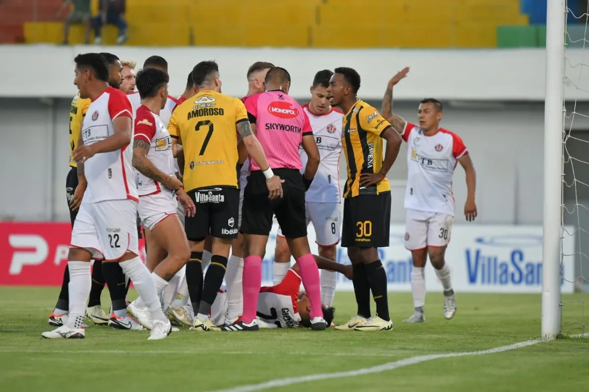 Todo fue generado por un polémico arbitraje de Javier Revollo que fue muy riguroso en la expulsión de Joel Amoroso, quien forcejeo con Samuel Guzmán en el área de la U en la primera parte y quedará suspendido para el juego en el estadio Hernando Siles.