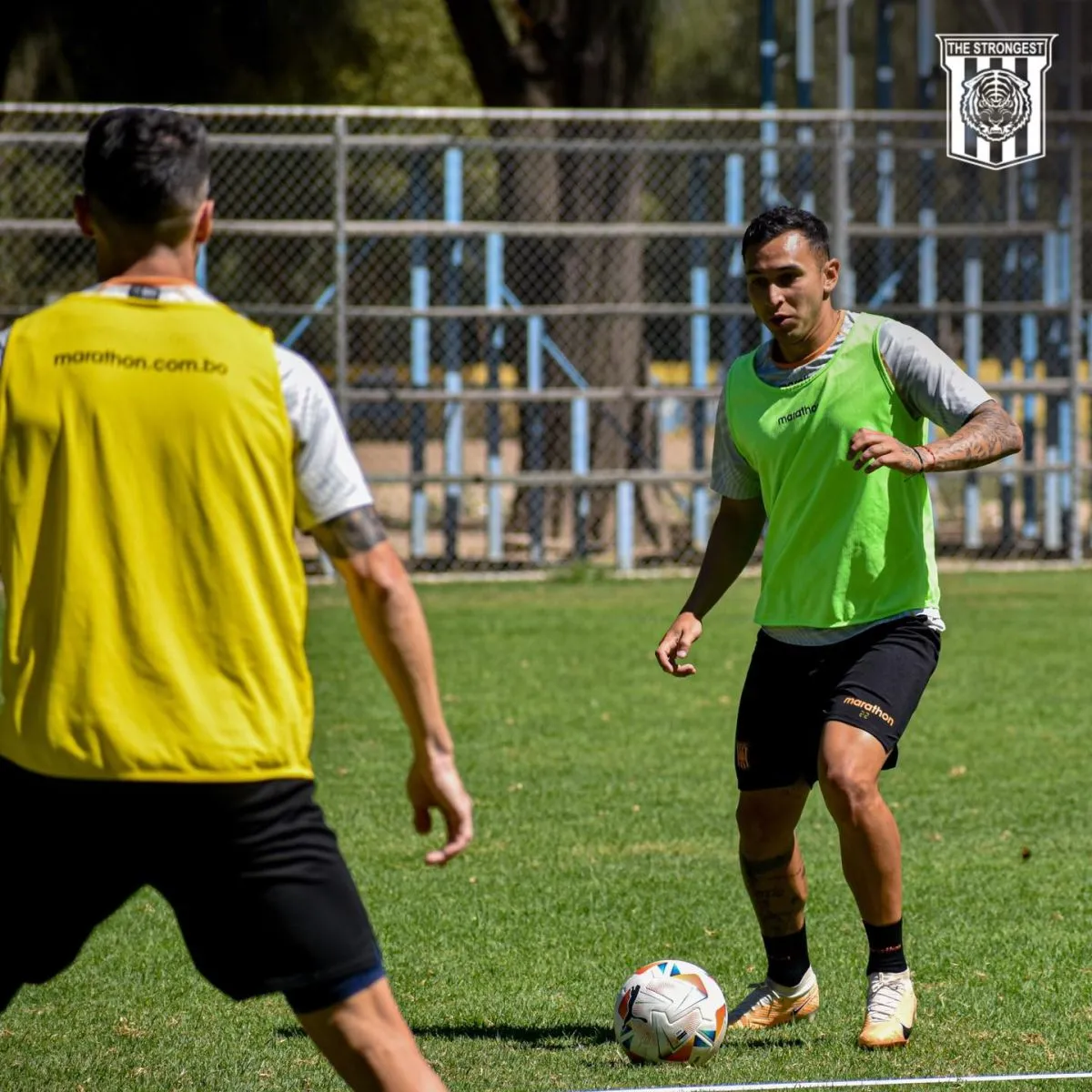 Bruno Miranda, domina el balón, en el entrenamiento en el Complejo de Aurora. Foto The Strongest