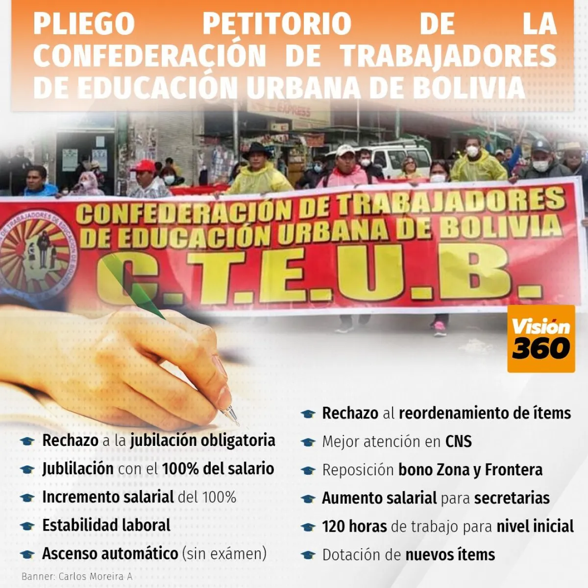 Si bien cada sector, sobre todo el magisterio, tiene demandas puntuales, el común denominador de la protesta es el rechazo a la “jubilación forzosa”, que según los tres sectores pretende aprobar el Gobierno mediante el proyecto de Ley 035 de modificación de la Ley de Pensiones.