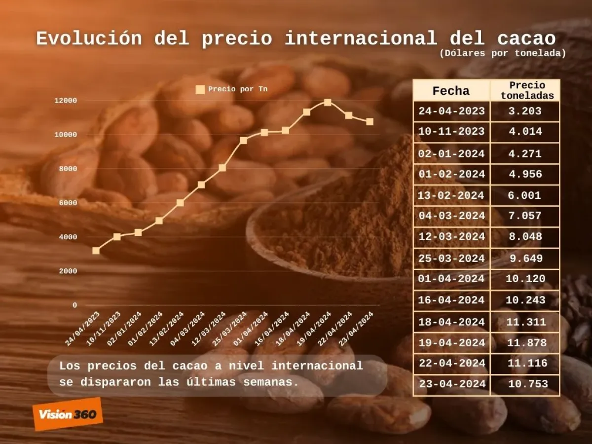 Según el portal Euronews los precios del cacao han aumentado rápidamente en los últimos meses debido a las malas cosechas en países de África Occidental, como Ghana y Costa de Marfil, que han reducido el suministro de cacao en todo el mundo.