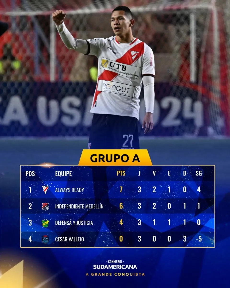 El próximo rival de Always Ready será Defensa y Justicia el próximo 7 de mayo en Villa Ingenio, a partir de las 22.00, “hemos tenido la oportunidad de empatar en Argentina, hay que tratar de sumar de a tres el próximo jueves”, subrayó Costa, quien agregó que “no quiero hablar de favoritismo, es partido a partido, hasta el momento estamos compitiendo de local y visitante, pero es una oportunidad de oro para aprovechar y pasar de fase”.