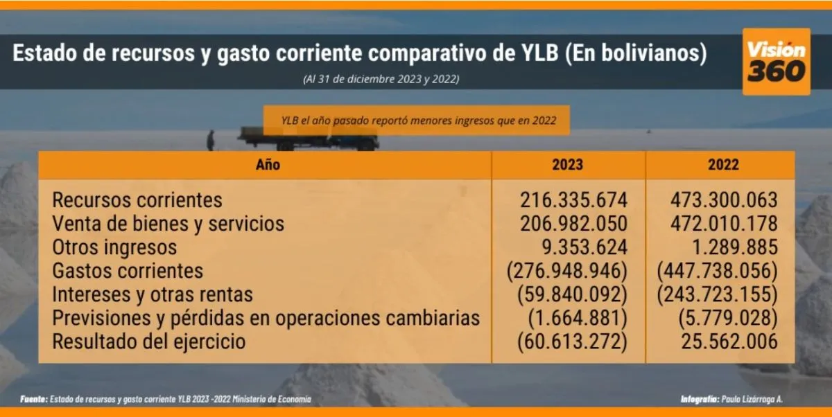 Visión 360 consultó el sábado a la Unidad de Comunicación de YLB y envió un breve cuestionario para conocer las razones por las cuales la estatal del litio reportó menores ingresos y una pérdida el año pasado, pero no obtuvo respuesta. Aunque la estatal pretende este año generar mayores ingresos, según reveló en su rendición de cuentas inicial 2024.