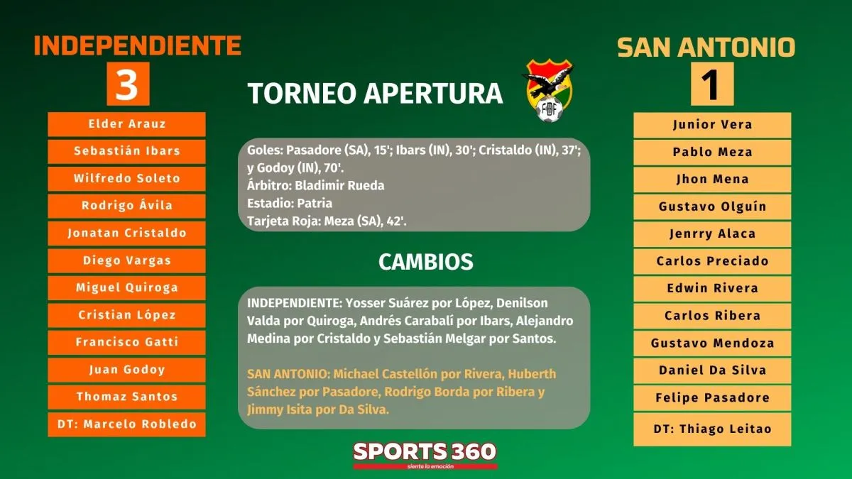 San Antonio se puso en ventaja con el tanto de Felipe Pasadore (15’), pero Independiente, que le faltó tres goles para igualar la serie, le dio vuelta con Sebastián Ibars (30’), Jonatan Cristaldo (37’) y Juan Godoy (70’).