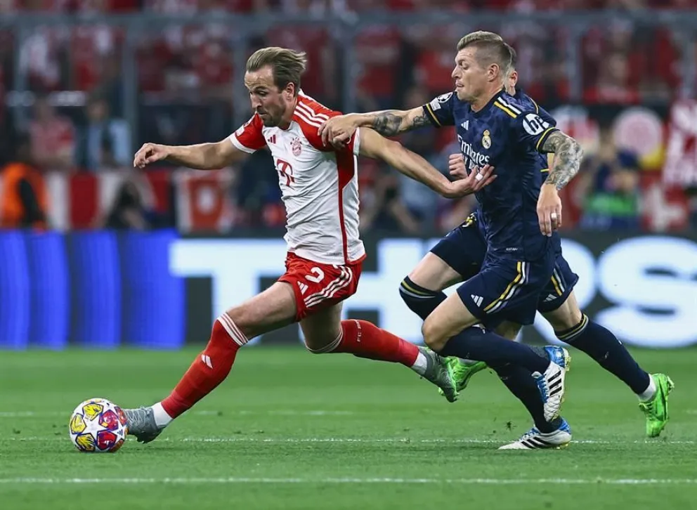 Kroos (der.), del Real Madrid, persigue a Kane. Foto: EFE.