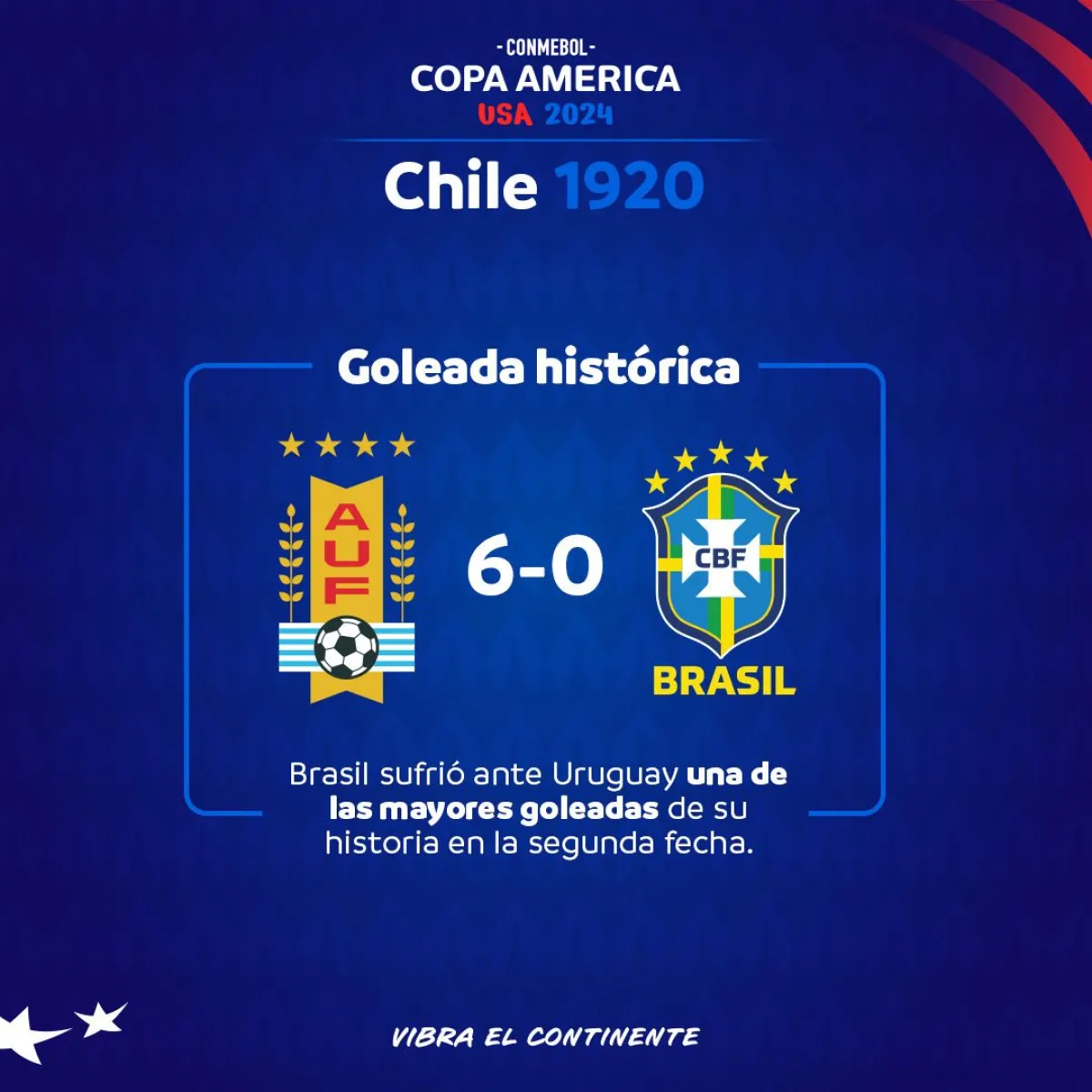 Brasil presentó un equipo con solo un jugador del plantel campeón en la edición anterior y si bien ganó en el partido inaugural 1-0 ante Chile, en la segunda fecha sufrió ante Uruguay una de las mayores goleadas de su historia: 6 a 0 en la segunda fecha.