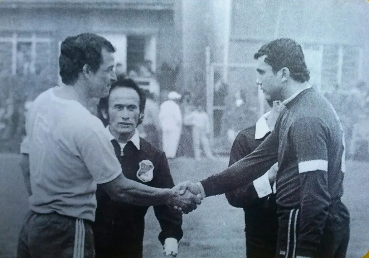 Javier Rivero en el sorteo de capitanes de un clásico con Rojas y Galarza. Foto: Colección Julio Mamani