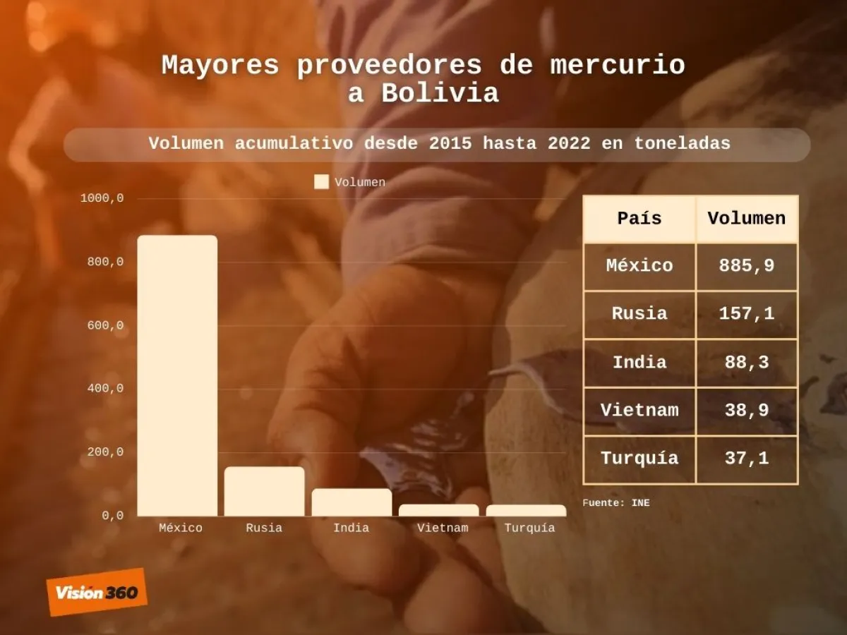 Actualmente, Bolivia es el mayor importador de mercurio del mundo. Desde 2015, ocupa el primer o segundo lugar del mundo en importación de este producto químico tóxico, solo por detrás de India, en ocasiones.  De 2016 a 2021, las importaciones del país superaron las 1.100 toneladas, en contraste con las aproximadamente 100 toneladas de Brasil durante ese período. Mientras tanto, entre 2013 y 2019, Perú logró una notable reducción del 95% en sus importaciones formales de mercurio.