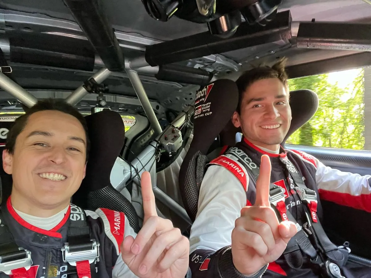 Marco (izq.) con su navegante Vallejo en Portugal. Foto: Prensa Bulacia.
