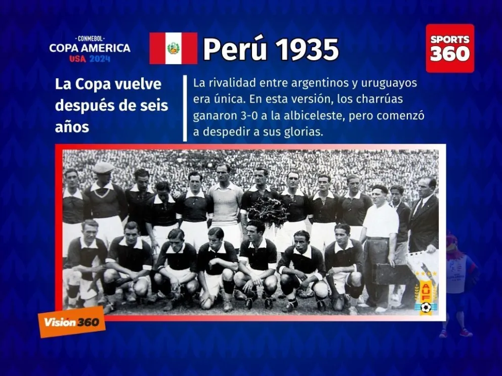 Volvió en 1935 con Lima como sede central y la particularidad de que, para mantener un tono más neutro y menos nacionalista, ninguna de las selecciones rioplatenses llevó su camiseta oficial, Uruguay utilizó una camiseta roja con detalles blancos y Argentina una toda blanca.