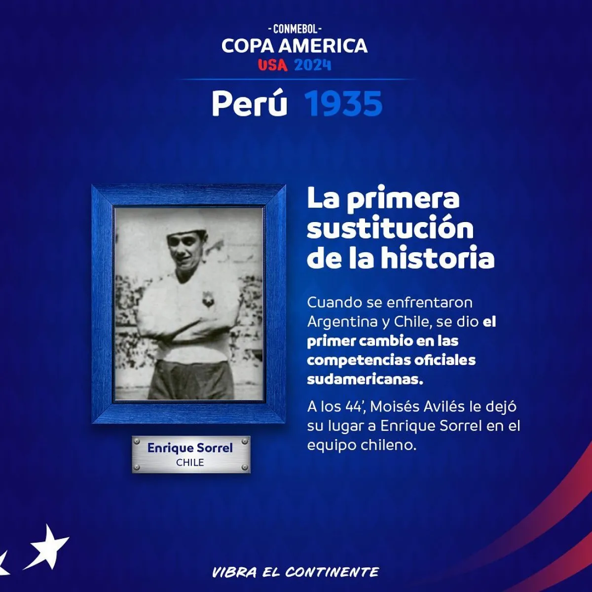El 6 de enero cuando se enfrentaron Argentina y Chile, se dio el primer cambio en las competencias oficiales sudamericanas. A los 44’ del primer tiempo, Moisés Avilés le dejó su lugar a Enrique Sorrel, el cambio fue fácil de identificar porque Sorrel usaba una boina blanca, en épocas que los árbitros dirigían a los gritos y no existían los carteles con indicaciones.