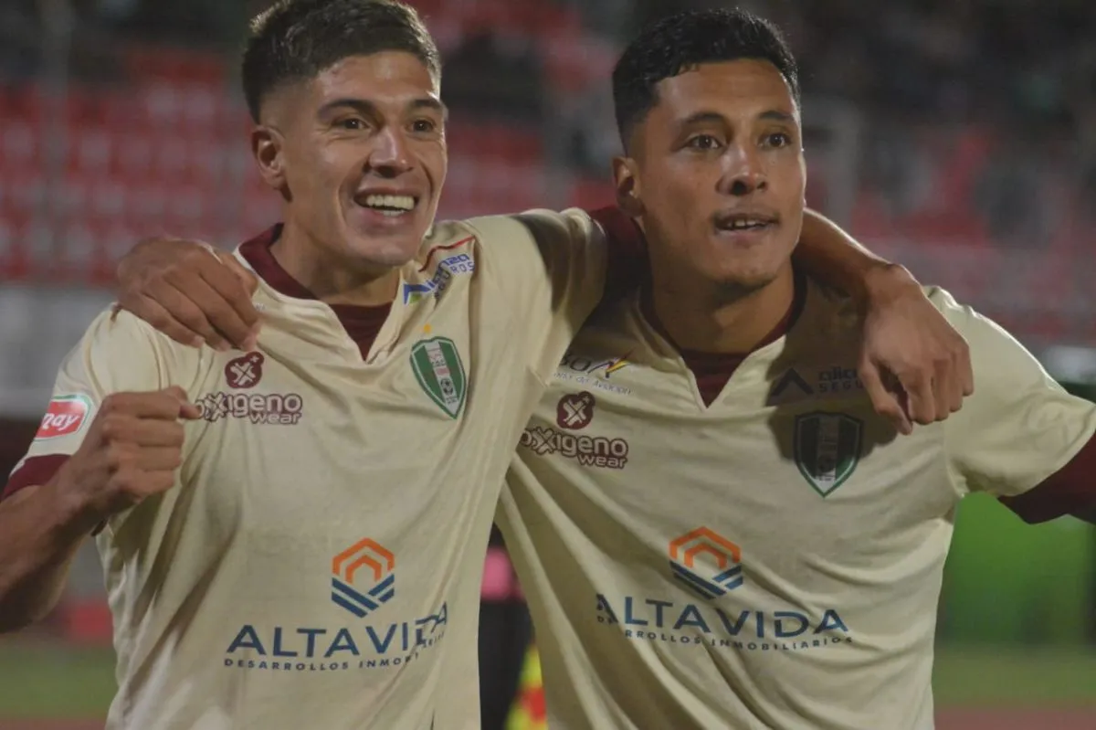 Graneros celebra el primer tanto del partido junto a Lima, en Tarija. Foto APG