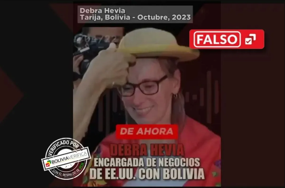 En un texto añadido al video, esta declaración es atribuida a la encargada de Negocios de la Embajada de Estados Unidos, Debra Hevia. Y se lee también esta referencia: “Tarija, Bolivia-octubre, 2023”.