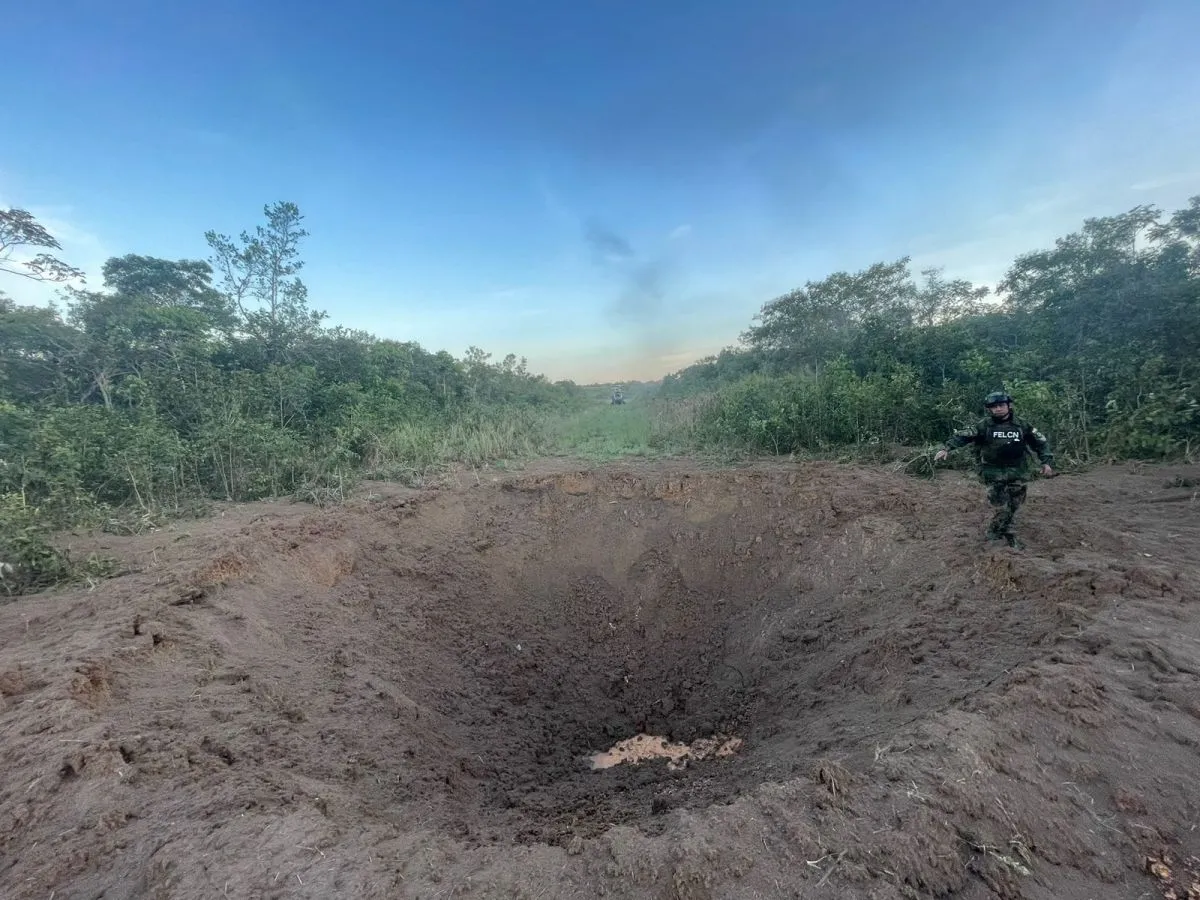 Una de las pistas destruidas con explosivos.  Foto: Felcn