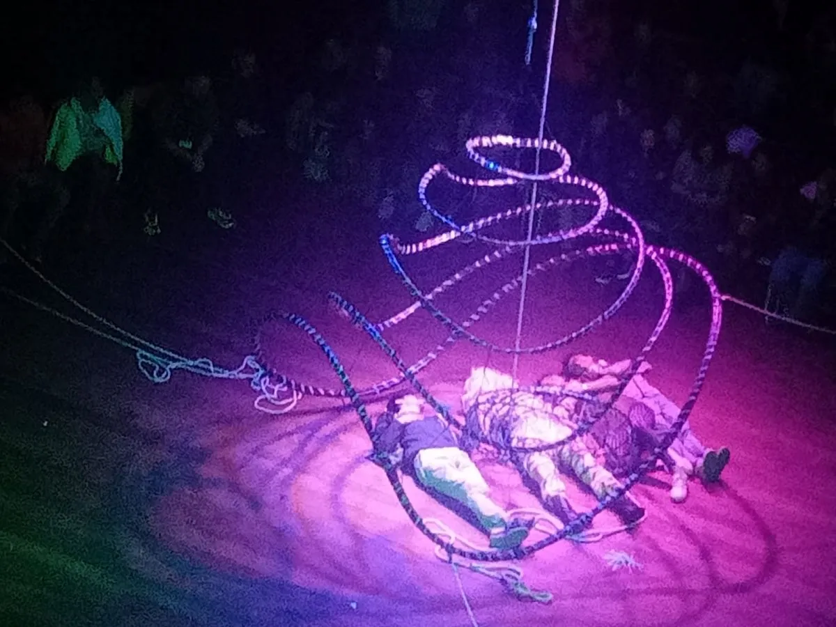 Pero no todo es tensión; en el interín Lita manda piropos a su amor, Santiago; da instrucciones a sus ayudantes –“Resolvé como puedas” es la consigna- y juega con el público. Todos reímos hasta que Lita se pone seria: “¿Acaso quien ha amado sin ser correspondido, no ha sentido morir el alma?”. Y los nudos que sujetan a la payasa pasan entonces a los corazones de los espectadores, ¿acaso…?