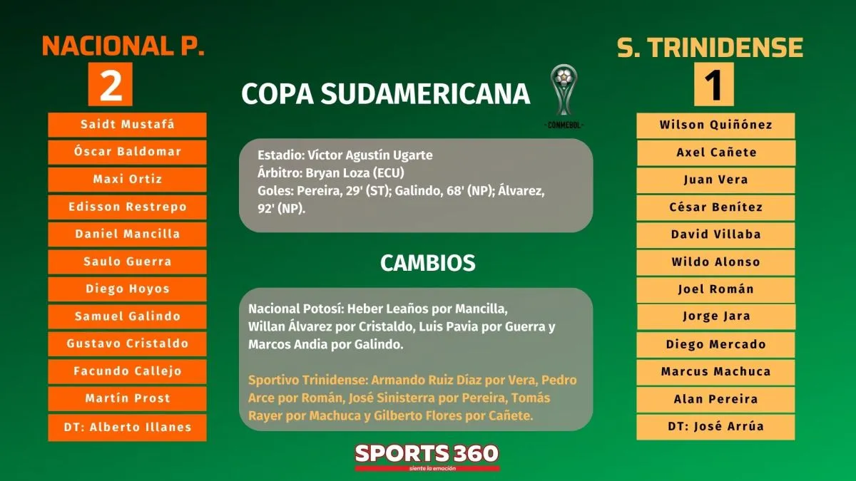 Nacional Potosí sigue en carrera en Copa Sudamericana tras la sufrida victoria que consiguió en la noche de este martes ante el Sportivo Trinidense de Paraguay (2-1), en partido de la quinta fecha del Grupo D, que se jugó en el estadio Víctor Agustín Ugarte de la Villa Imperial.