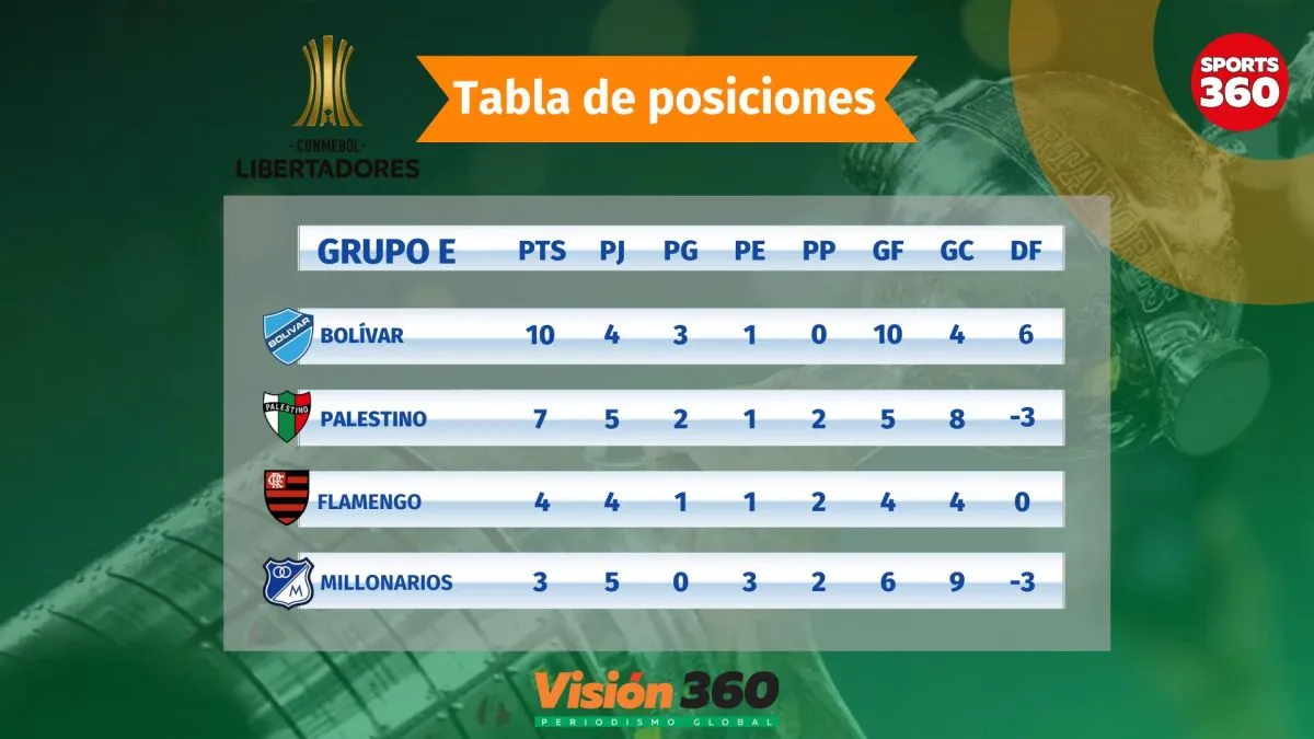 El panorama esta así: los millonarios tienen 10 puntos al igual que el Independiente de Medellín (DIM). Defensa y Justicia (5) y César Vallejo (0) están eliminados.
