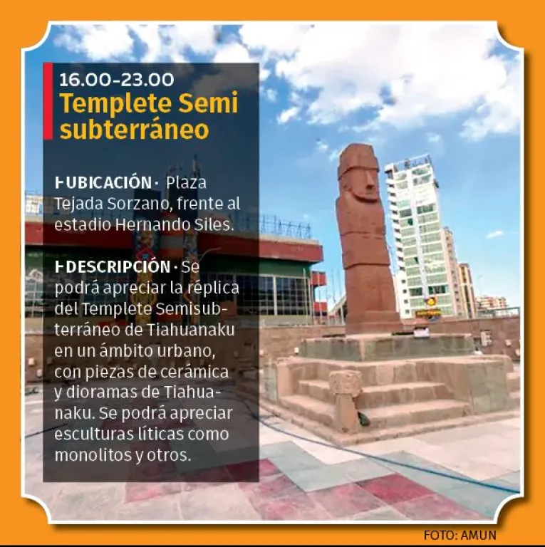 Como parte del recorrido obligado está la réplica del templete y monolito Bennett, frente al estadio Hernando Siles. Los asistentes podrán conocer la historia detrás de las réplicas y del monolito original y los misterios que los rondan.