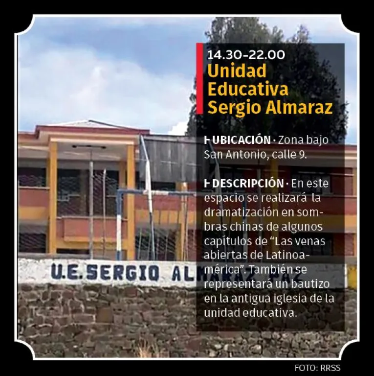 "Exposición, demostración y participación de arte en vivo": Su oferta se centra en los 100 años de historia, una exposición de fotografías, placas y trofeos de la trayectoria del Sucre Tenis Club. Además habrá una demostración de diversidad de artes y disciplinas escénicas  como:  baile folklórico, baile urbano, capoeira, baile en tacones, cuentacuentos, baile para adultos mayores, taekwondo, psicomotricidad en familia y tenis.