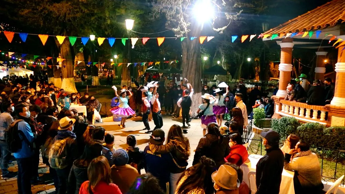 Un grupo de personas en la plaza Camacho, uno de los puntos de la Larga Noche de Museos. FOTO: GAMLP